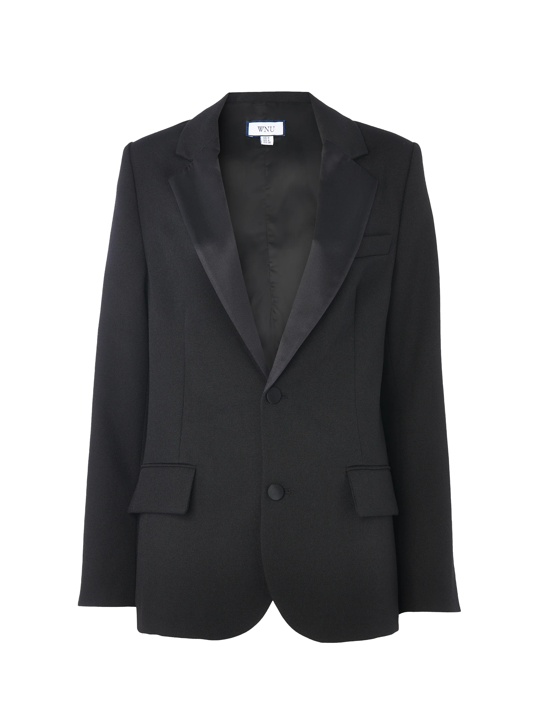 Hutton Tuxedo: Wool, Black. Slightly oversized with a relaxed fit, this tuxedo takes its cues from traditional male tailoring. Cut from 100% suiting wool with silk lapels, it looks sharp with something tailored and works casually with denim. Designed in London, made in Portugal.