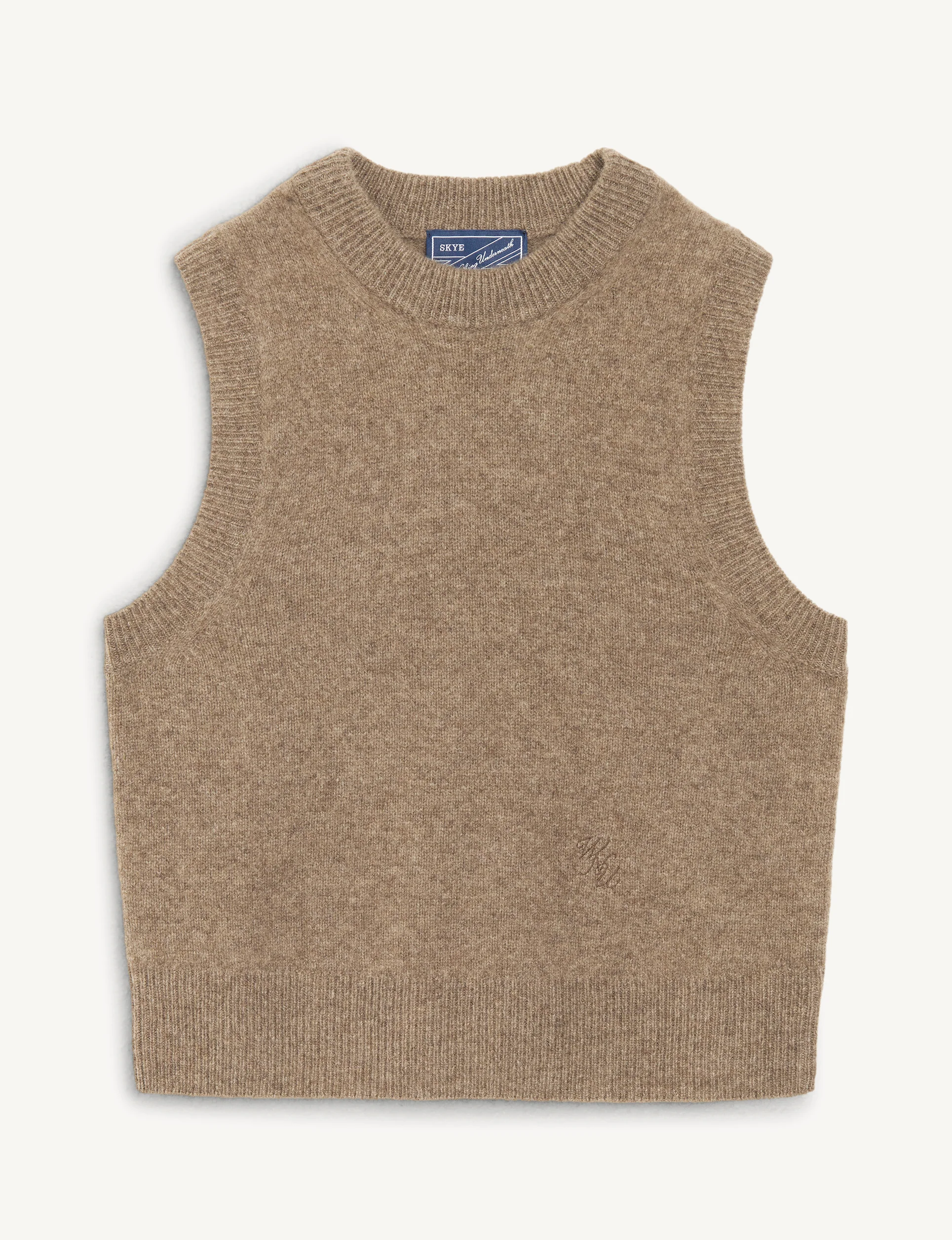 Skye Vest: Yak Wool, Coffee. A transseasonal staple that lets you layer up with less fabric. Style this creamy shade solo tucked into tailored wool trousers to lean into a modern, minimalist aesthetic. Or pull it on over denim and a frilled blouse to master masculine-feminine dressing.