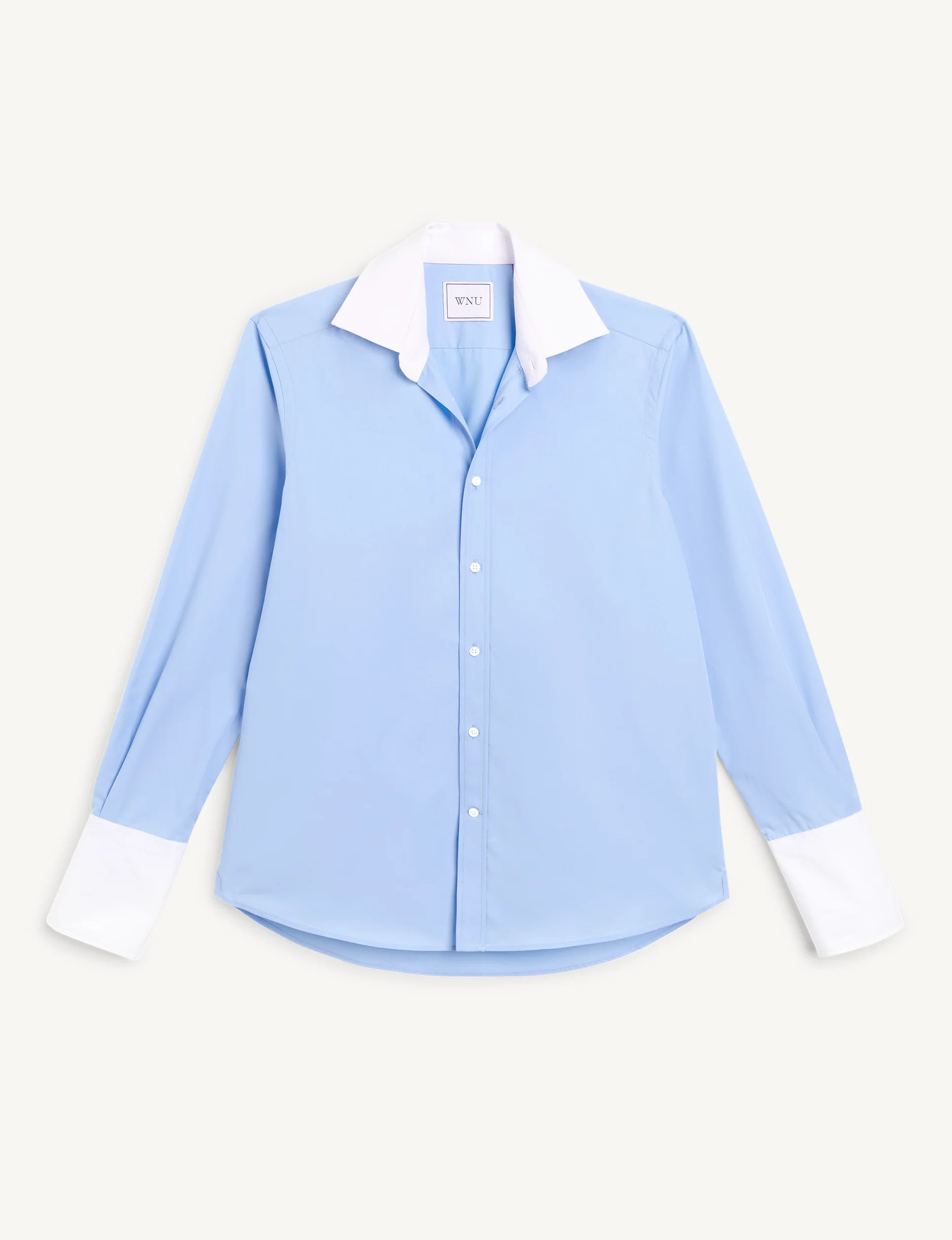 The Boyfriend Contrast Exaggerated Cuff and Collar: Fine Poplin, Sky Blue